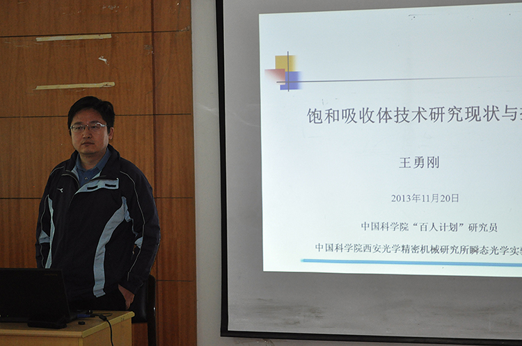 11月20日上午,中国科学院西安光学精密机械研究所,瞬态光学与光子技术国家重点实验室研究员王勇刚教授在信息学院作了题为“饱和吸收体技术研究现状与挑战”的学术报告,本次报告由信息学院杨克建老师主持,学院部分师生聆听了报告。