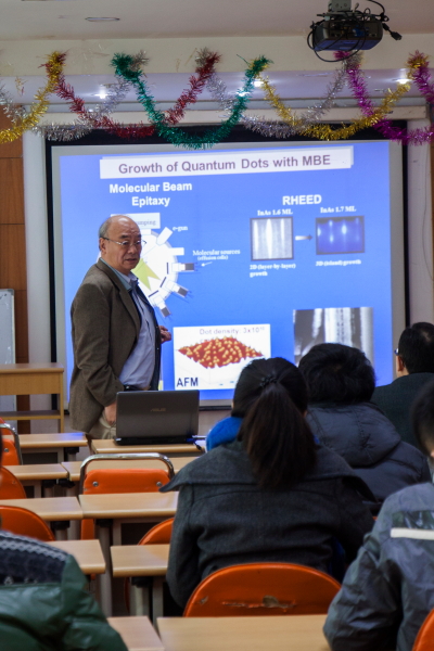 On November 30th, Professor Jim-Yong Chi from National Chung-Hsing University (NCHU), Taichung, Taiwan, delivered an academic report titled Quantum Dot Lasers. The main content is the InAs/InGaAs Quantum Dots in VCSEL Microcavity for Nanophotonics Research. Zhang Xingyu, Associate Dean of College of Information Science and Engineering, hosted the report. Part of the faculty and the students attended the lecture.