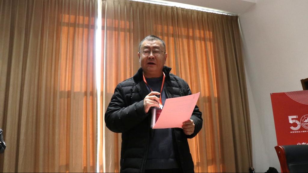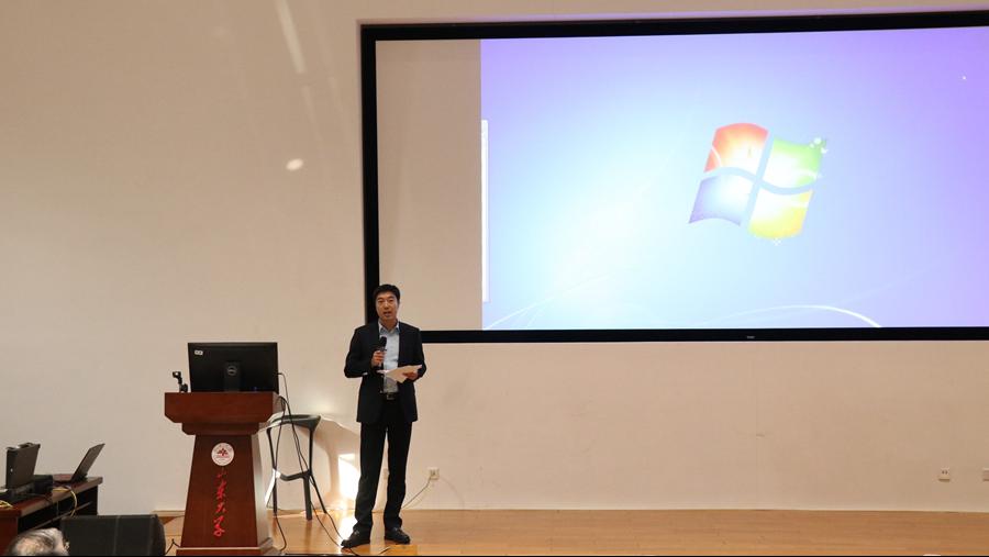 93级校友王小东进行题为“秉山魂海韵情怀,展山大光学风采”的报告。他强调了大学专业学习的重要性,提出理性、坚持、专业的企业家精神内涵。