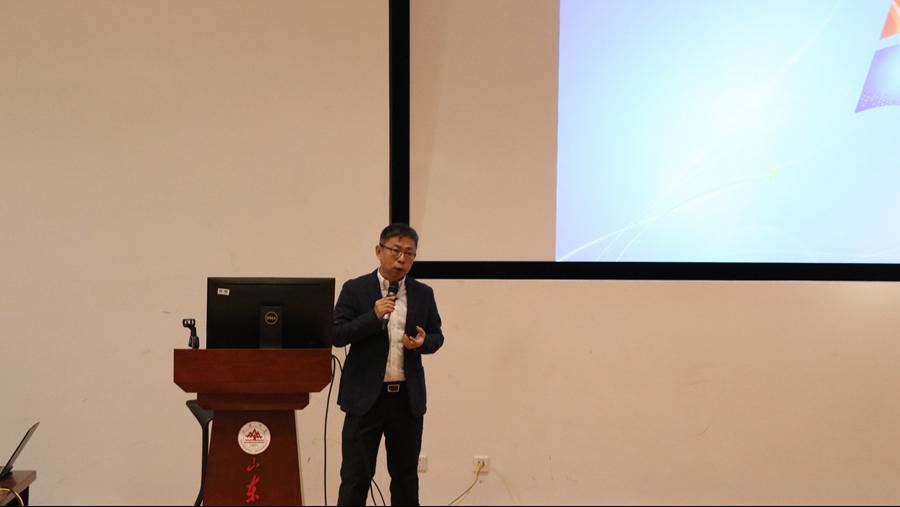 99级校友王培峰科普了高功率高能量皮秒激光器的研发及产业化的相关知识,并分享了自己的创业经验,对山大学子们寄予厚望。