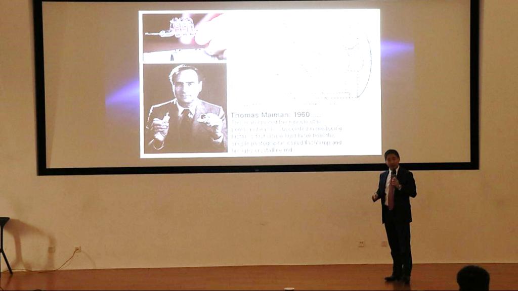 论坛以线上线下相结合的形式开展。82级校友翟琪瑛在论坛现场以“激光的神奇和它的美丽”为题,介绍了激光在医学领域上的功能及其应用。