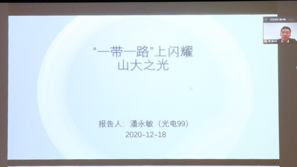 线上参会人员,99级校友潘永敏以“‘一带一路’上闪耀山大之光”为题,分析疫情之后海内外的投资热点,指出未来十年具有发展潜力的行业。99级校友张栋以“建设信息世界路站岛,助理国内国际双循环”为主题,为大家介绍了未来通信发展的主要方向,在学习发展方面给山大学子提出了宝贵的建议。