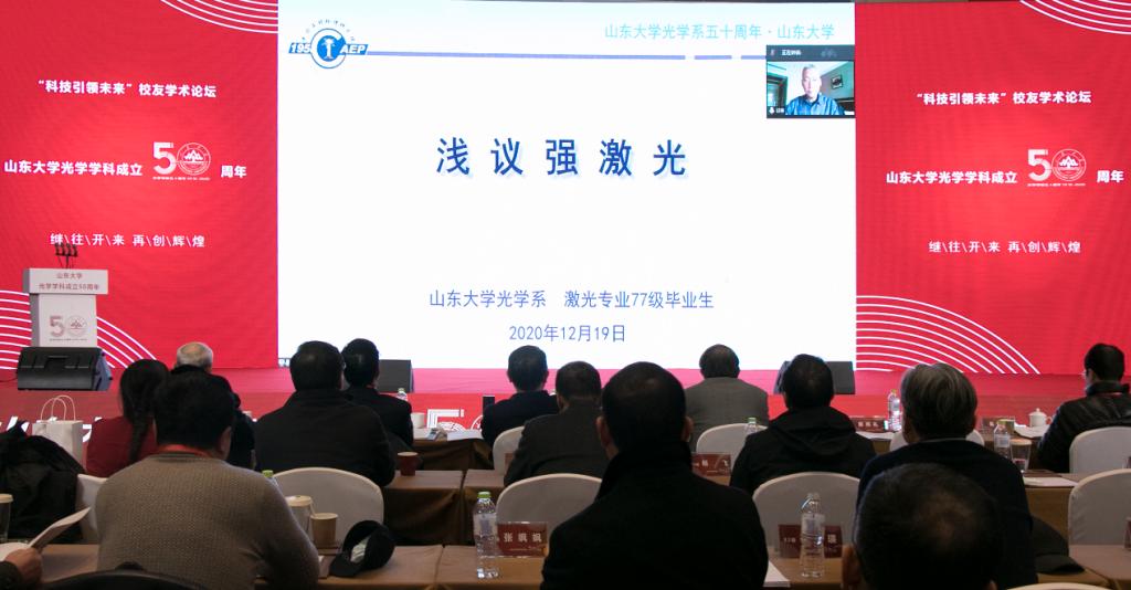 12月19日上午,必赢76net线路官网光学学科成立50周年系列庆祝活动之“科技引领未来”学术论坛(主论坛)暨信息学院博士高端学术讲坛在青岛顺利举行。必赢76net线路官网光学高等研究中心首任主任方家熊院士、退休教师代表徐平茂教授、退休教师代表、必赢76net线路官网育才功勋王青圃教授、必赢76net线路官网光学系杰出校友刘泽金院士、张小民研究员、郑婉华研究员、谭小地教授、必赢76net线路官网副校长、必赢76net线路官网青岛校区校长韩圣浩教授、党工委副书记郭邦礼出席论坛。各年级校友代表、必赢76net线路官网晶体材料研究所、物理学院、化学与化工学院、必赢76net线路官网、光学高等研究中心、青岛校区有关职能部门主要代表、优秀教师代表与学生代表近150人参加论坛。