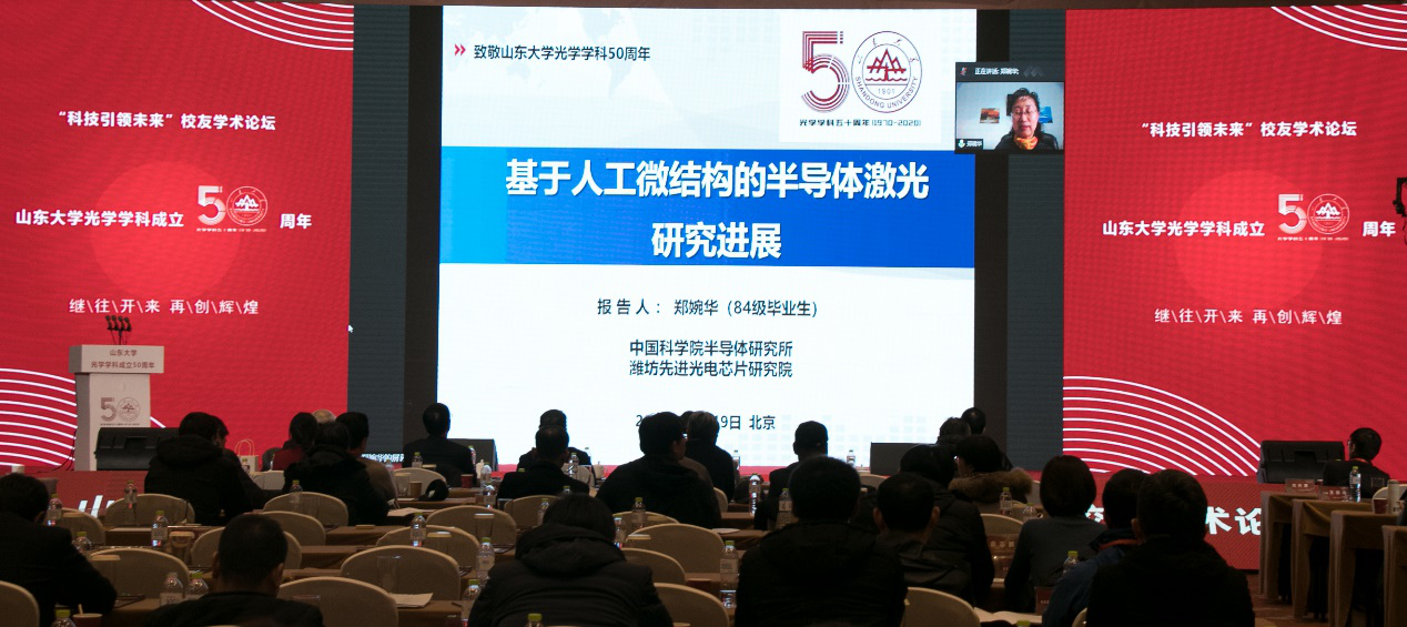 郑婉华研究员以线上的形式进行基于人工微结构的半导体激光研究进展的报告。她讲述了半导体激光器与光子晶体半导体的研究,通过激光技术兼容,实现这类高端芯片的产业化。她强调了半导体激光的重要性;她指出,半导体激光有两种作用,一种作为信息使用,一种作为能量使用,而半导体激光是一种应用和技术,有多种使用途径,半导体激光的发展,对我们国家的技术发展有重大意义。